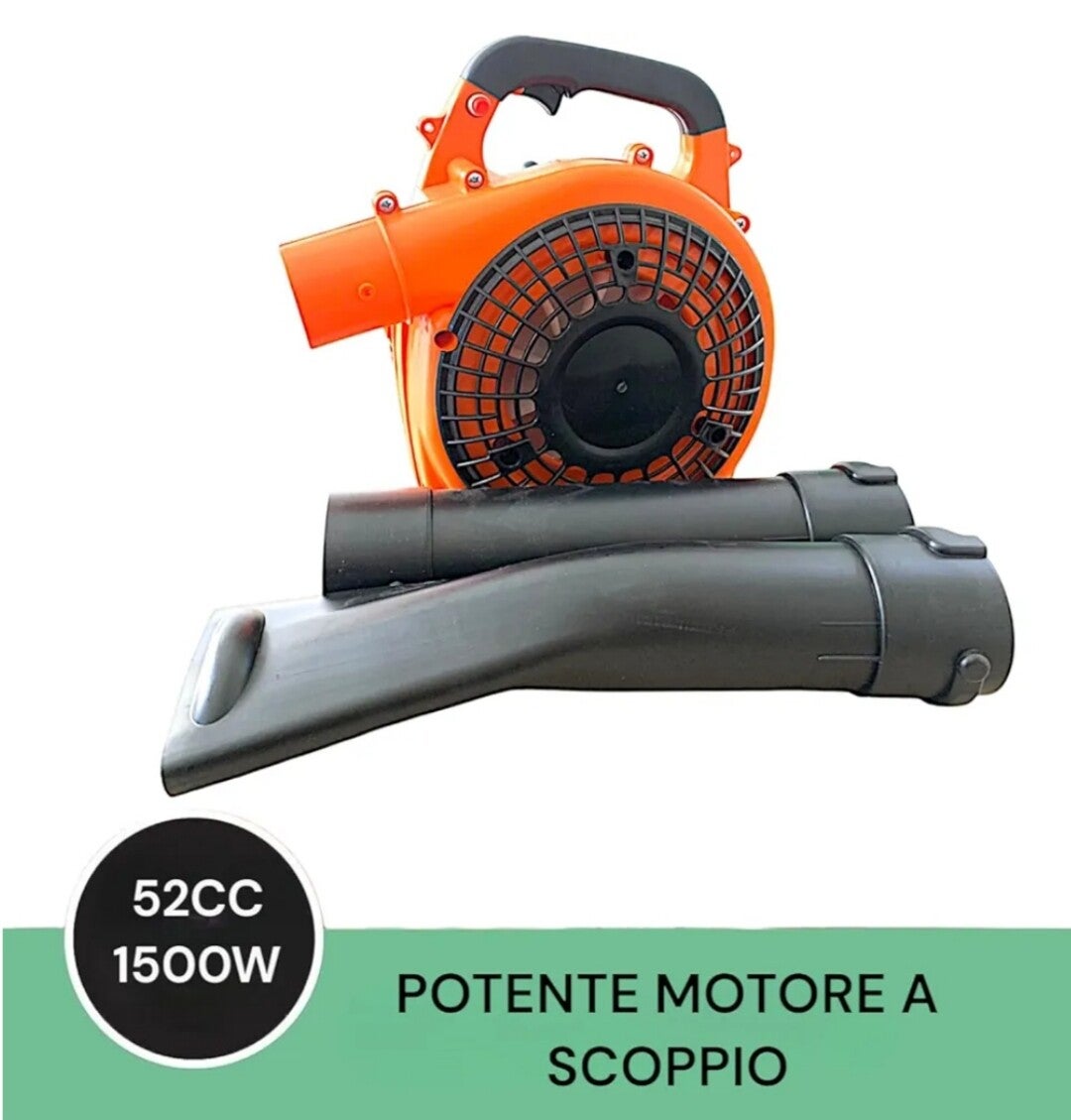 Soffiatore a scoppio 52CC con motore 2 Tempi Potenza 1500W Soffiatore da giardino per manutezione spazi esterni leggero e portatile, per la cura del prato, detriti e pulizia del cortile