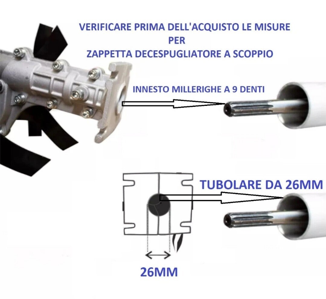 - Compatibilità: Adatto per motozappe e decespugliatori con tubolare da Ø26 mm di diametro.
