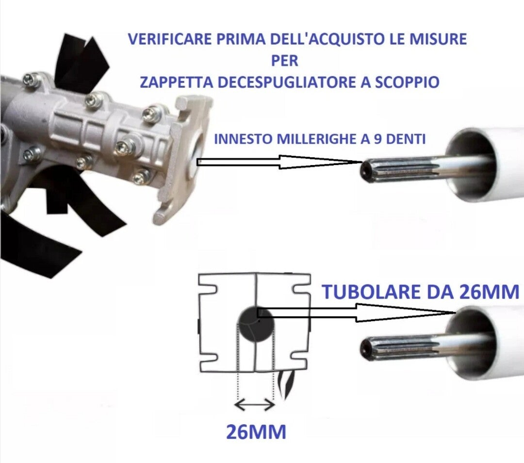 - Adatto a decespugliatori con asta da 26mm e attacco a 9 denti.